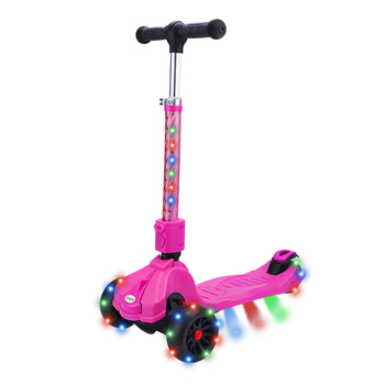 Venta caliente Hot Pink 3 Wheel Kids Scooter LED Iluminado Manillar Ruedas intermitentes Altura ajustable Durable Ligero Juguete al aire libre