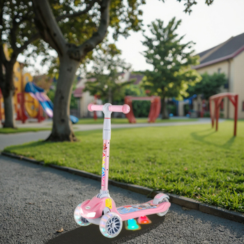 Scooter rose réglable pour enfants pendant 7 ans mignon dessin animé jouet à 3 roues clignotant fonction léger pliable pour une utilisation en extérieur fabriqué en PU