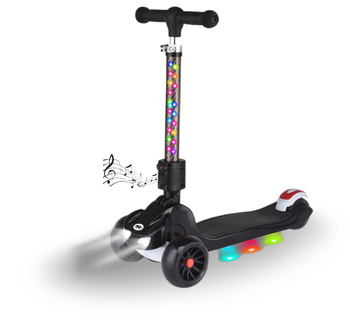 สกู๊ตเตอร์ไฟ LED หลากสีและฟังก์ชั่นดนตรีปรับความสูงได้ทนทานของเล่นกลางแจ้งสำหรับเด็ก3ล้อ
