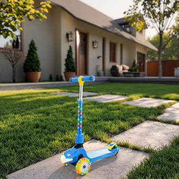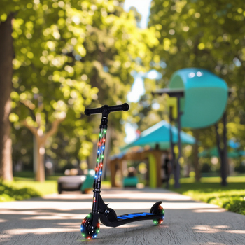 Đáng Yêu LED Nhấp Nháy 3 Bánh Xe Có Thể Gập Lại Chiều Cao Có Thể Điều Chỉnh Trẻ Em Xe Tay Ga Tuyệt vời Ngoài Trời Cưỡi Thiết Bị Cho Trẻ Em